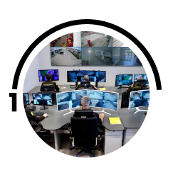 Puestos de vigilancia con intervención en línea conectados al Centro de Control de Prosegur, monitoreando las 24hs. todos los puntos de acceso y detección de situaciones anómalas.