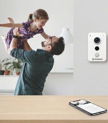 Podés ver tu casa en vivo, acceder a grabaciones en tiempo real y recibir alertas por movimiento de personas. Monitoreá tu hogar como si estuvieras allí, a través de la app Prosegur Smart.